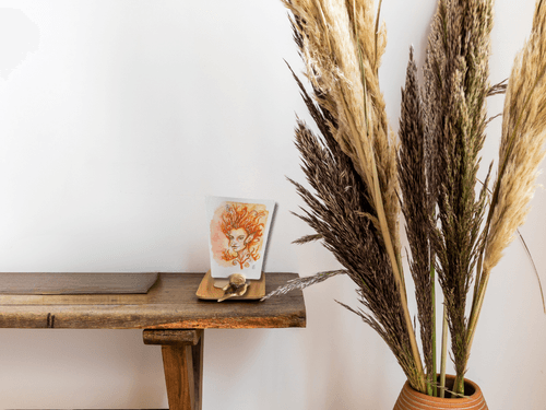 - Portaluz hecho a mano: pieza artesanal programada para fusionar la energía del retrato con tu péndulo, sirviendo además como cuna sagrada para protegerlo y recargarlo mientras no lo usas.